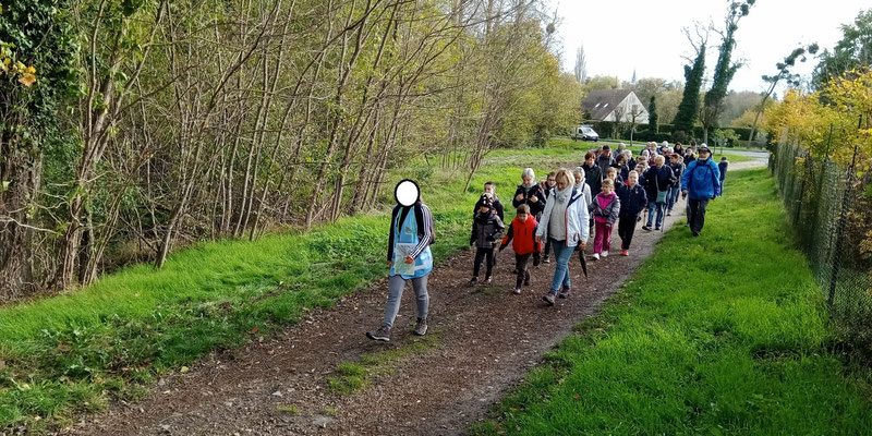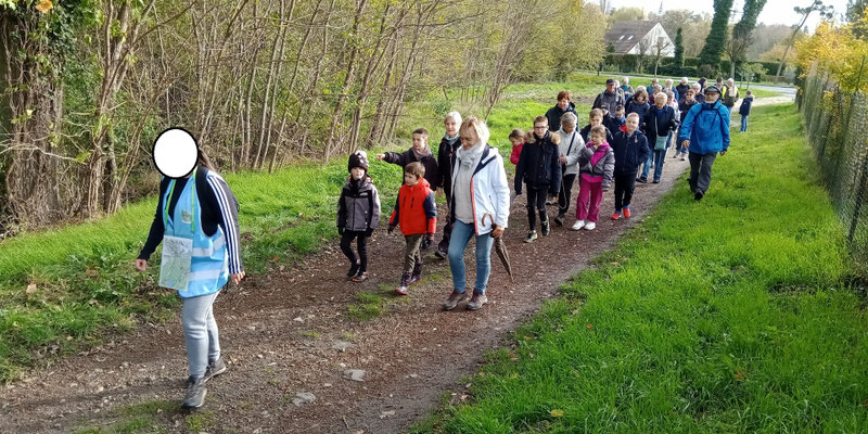 Une météo généreuse en soleil a probablement fait envie à 45 personnes ( 31 femmes et 14 hommes ) de profiter de ce beau temps et des couleurs d'automne d'une nature qui s'apprête à hiverner. Après avoir embouteillé le parking au moment où les mamans apportent leurs enfants à l'école, nous sommes partis en direction de Nogentel par le GR14 en prodiguant des conseils de sécurité pour traverser la D1 particulièrement dangereuse. Nous avons parcouru de beaux chemins de vignes jusqu'à hauteur de la ferme "le petit Luquis", et de là nous avons récupéré à travers un petit chemin "secret" la Dhuys afin de revenir à notre point de départ.