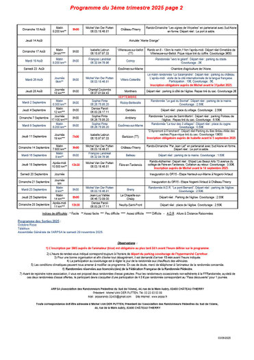 Inscription obligatoire auprès de Michel tel : 06.03.18.46.81